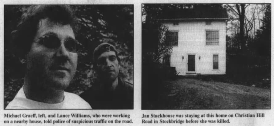 Back in Stockbridge, the theory that Jan’s murder was the result of a disgruntled labor dispute gained traction—if only as a way for locals to believe that crimes like that didn’t happen in their community. For some residents, it was reassuring to think that violence followed Jan from the city than to accept that it had been waiting in Stockbridge all along.